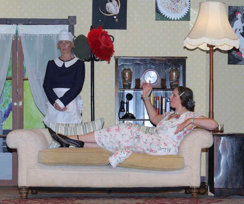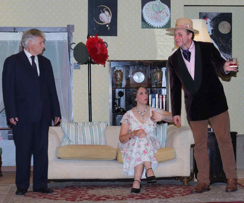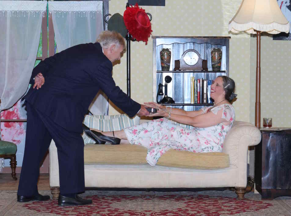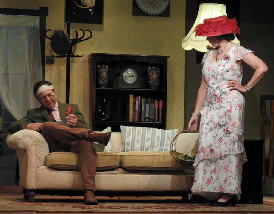 Sorel Bennett (Mel White) enters from the garden and tries to draw Edward’s attention away from the Daily Mail crossword