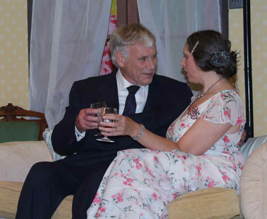 Jack the chauffeur (Jonathan Neil) and Bridgit the maid (Kathryn Kendall)