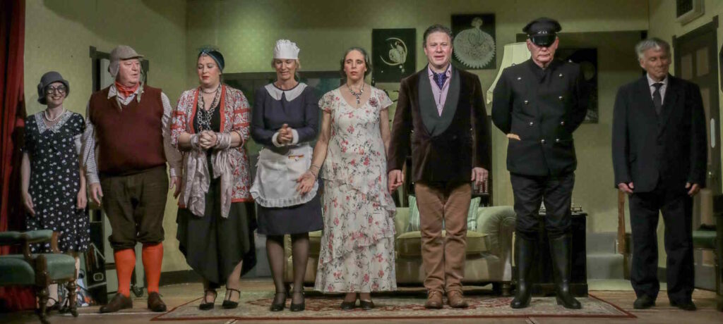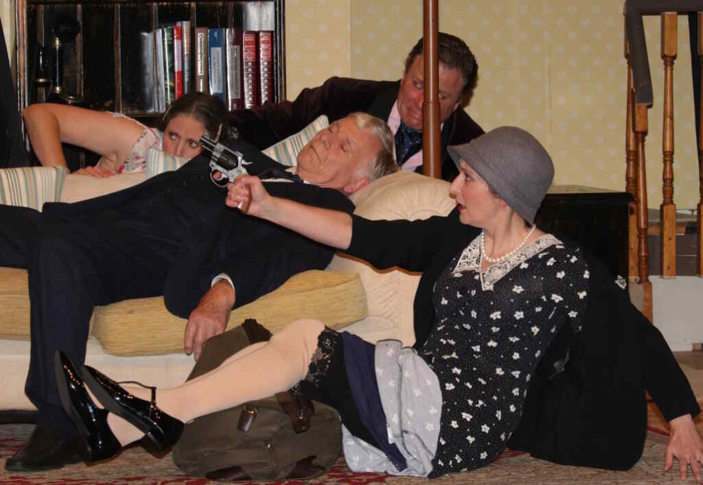 Kathryn Kendall brought sharp wit to the role of Bridgit, the irritable maid determined to crack the mystery, boldly declaring, “no one leaves this room until I discover who murdered Walter Pearce!” Jonathon Neil was charming as Jack, the womanising chauffeur, with hints of a disdain for Pearce, while keeping his own motives hidden until the end.