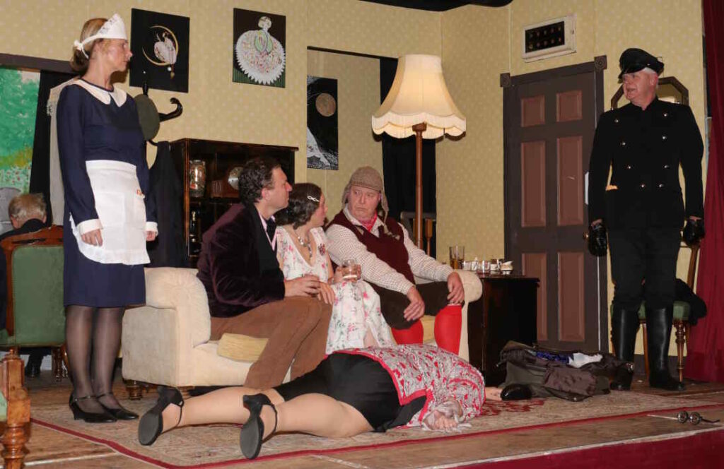 Last weekend, I had the pleasure of attending Headley Theatre Club’s spirited production of Death by Design, a farcical murder mystery by Rob Urbinati. The play is a clever blend of Noel Coward’s witty drawing-room comedies and Agatha Christie-style intrigue, with sharp dialogue, eccentric characters, and a suspenseful atmosphere that keeps the audience guessing until the final curtain. Paired with a delicious three-course supper, the production delivered an engaging evening of entertainment, with some standout performances elevating the experience.