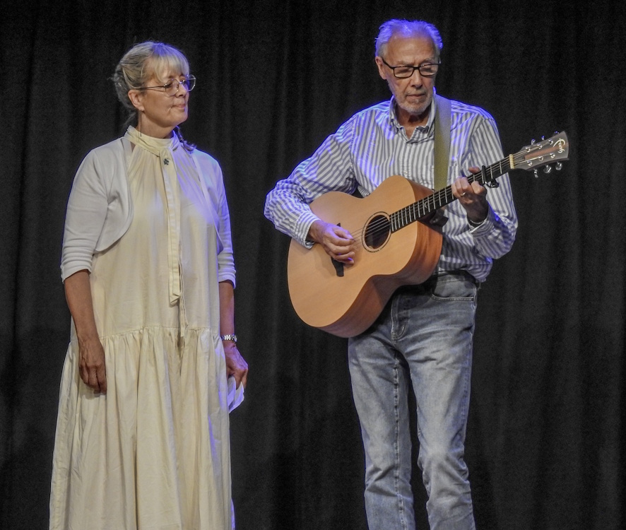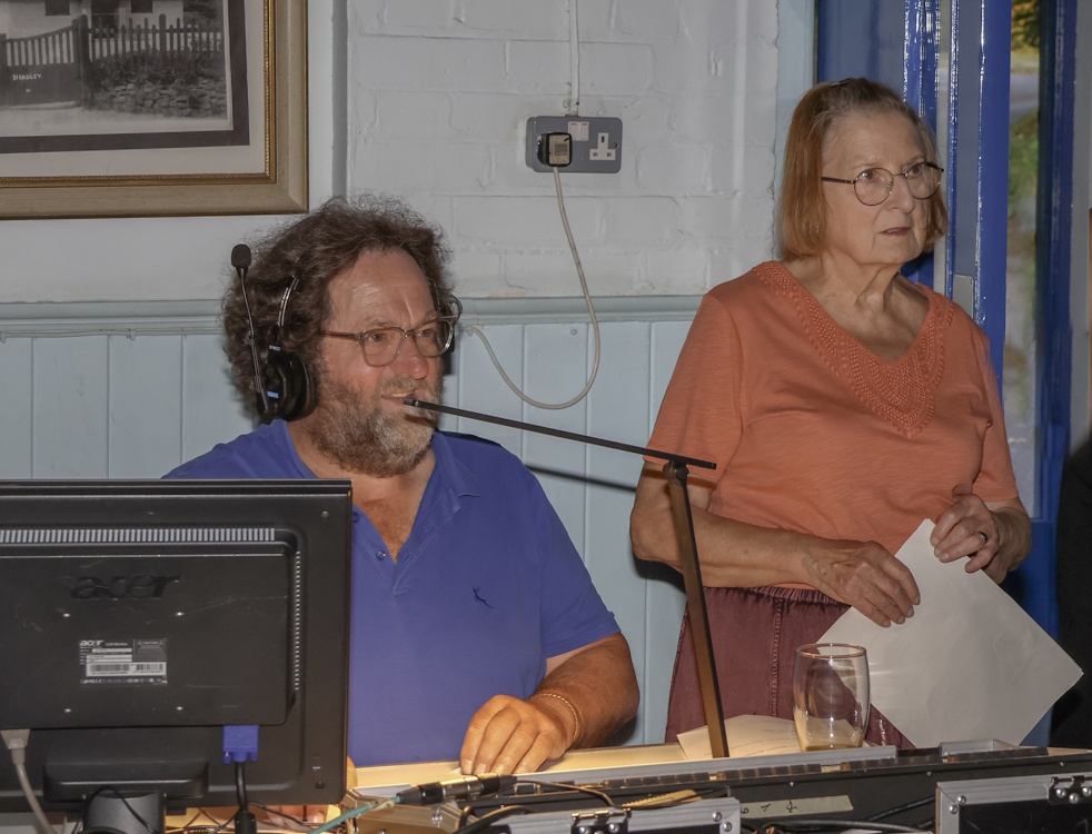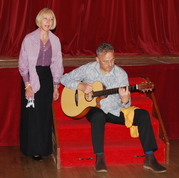 Mel White reads the start of ‘Lark Rise to Candleford’ to introduce David Burnham and Barbara Parry (on shuti box) singing ‘Arise and Pick a Posy’