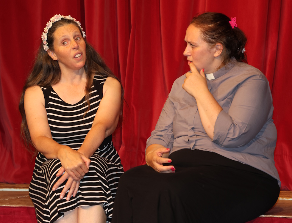 Well, not quite the end – after the curtains closed (in both Acts), Mel White (as Alice) and Karina Farnlucher (as Geraldine) repeated some of the well-loved jokes from ‘The Vicar of Dibley’