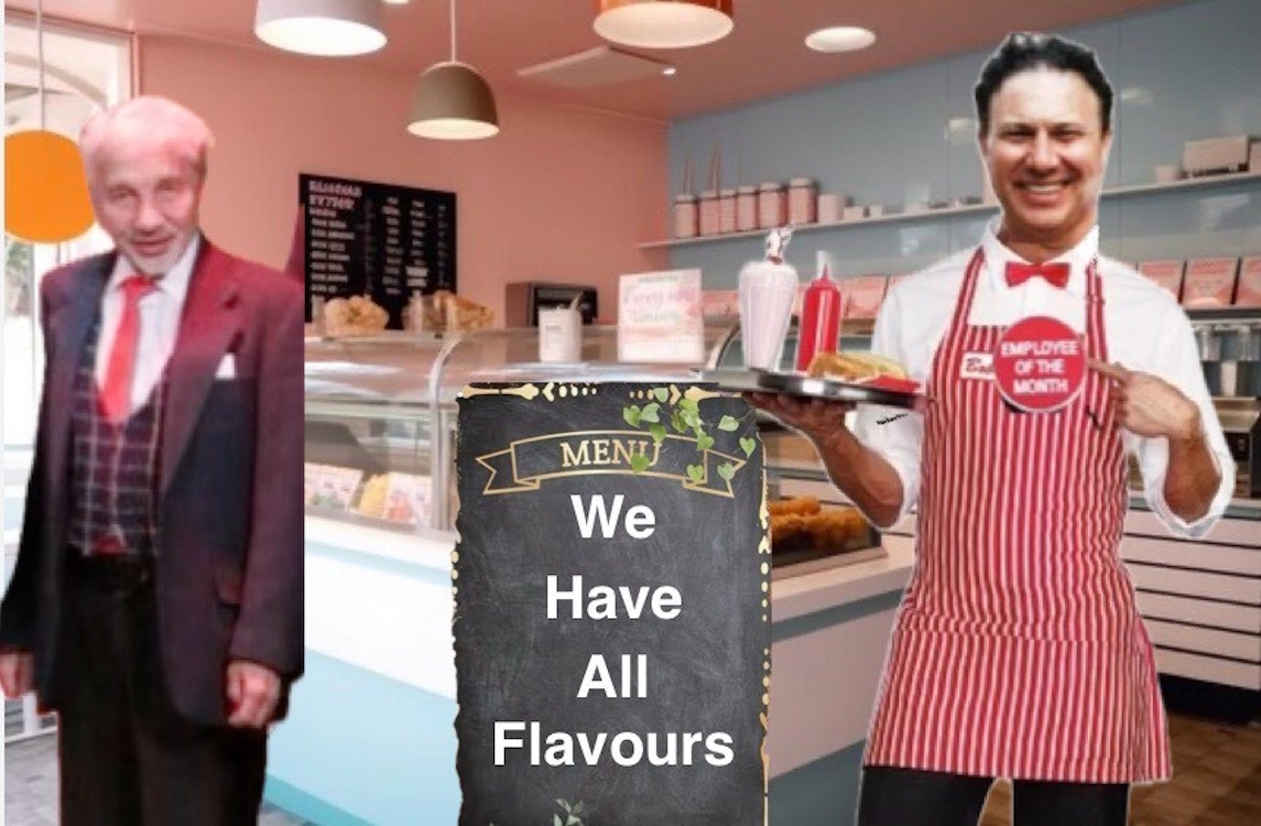 Rufus Kendall at his ice cream parlour with an awkward customer in Neil Hardinge