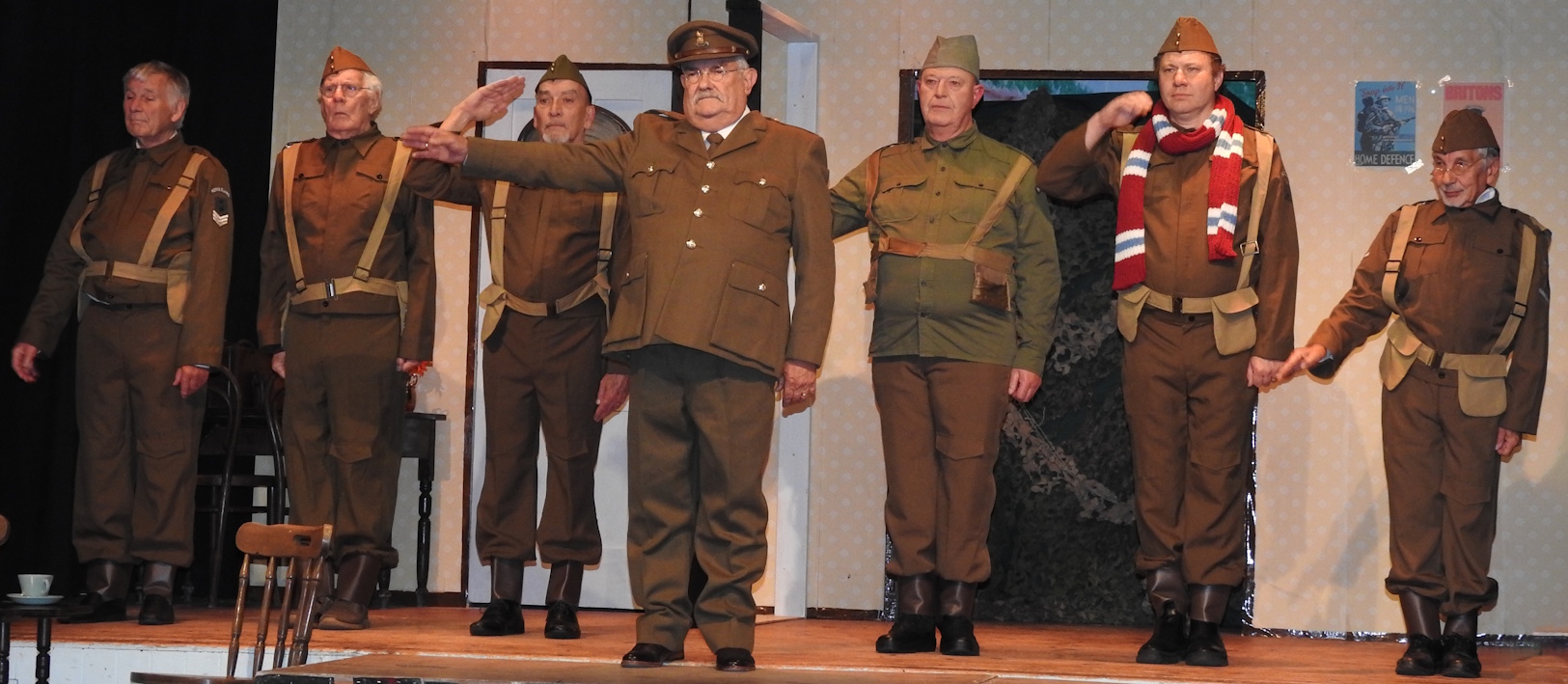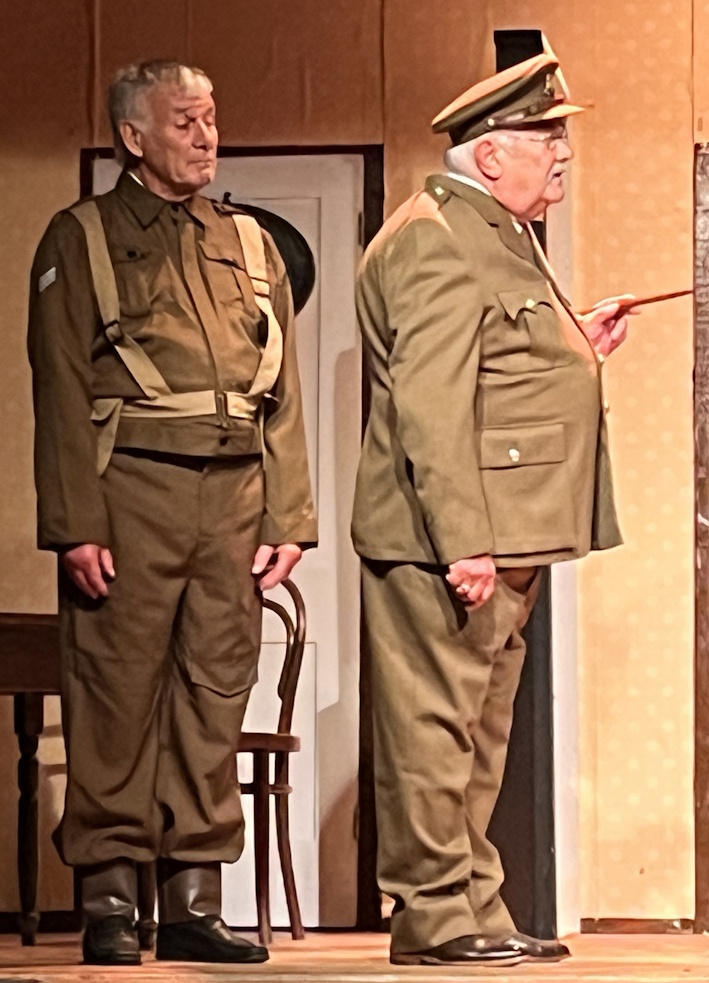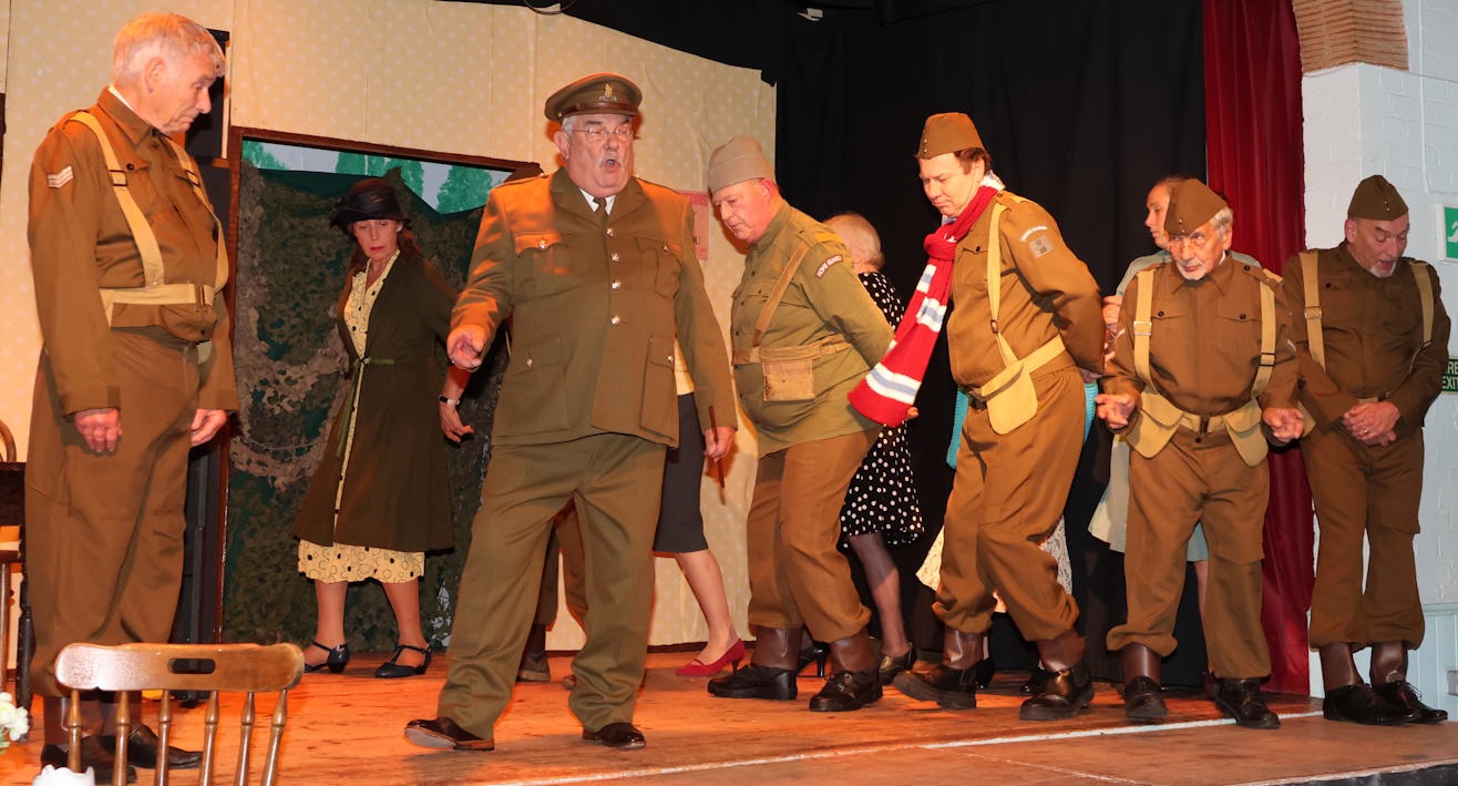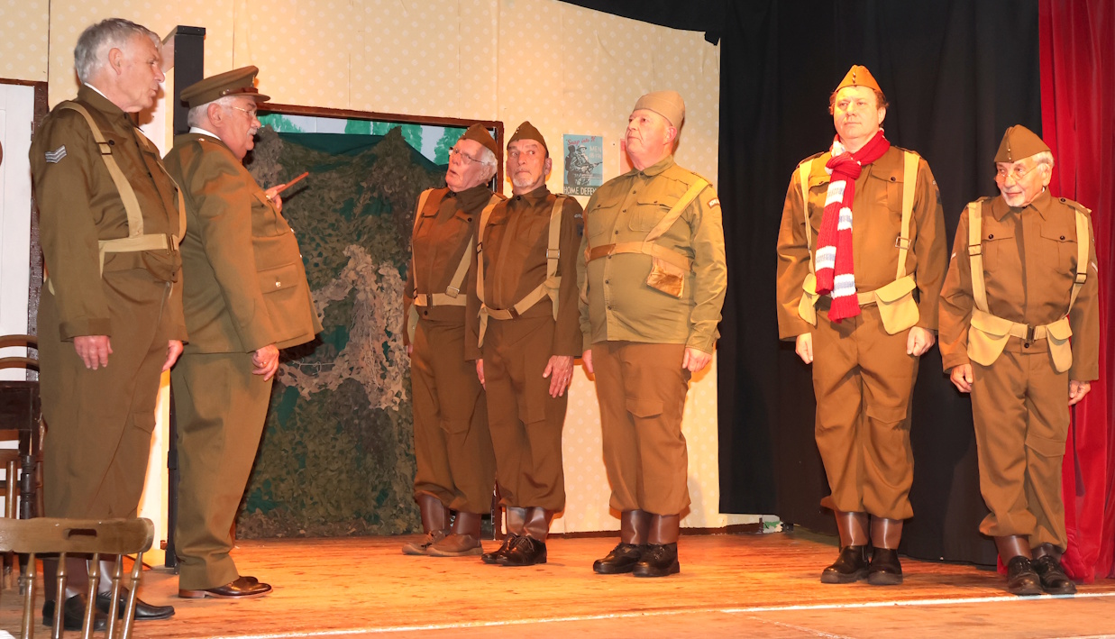 Up on stage the platoon is inspected by Capt Mainwaring (Nick Webb) and Sgt Wilson (Jo Smith).