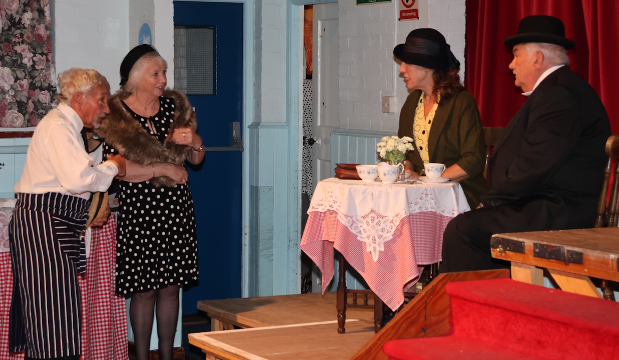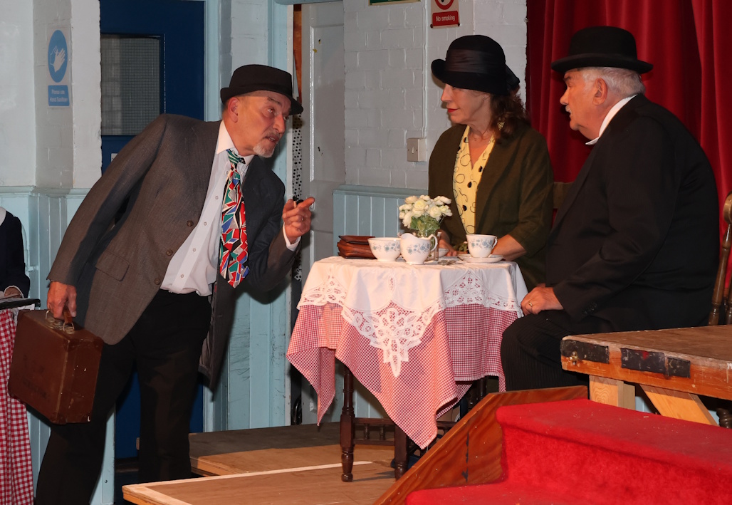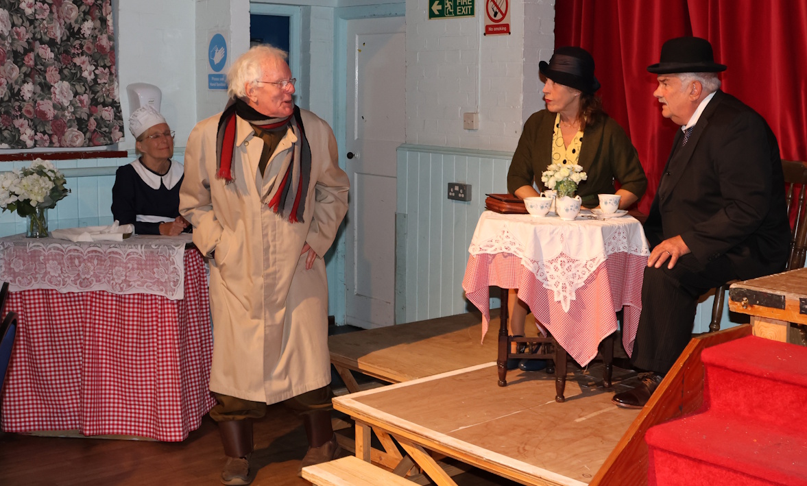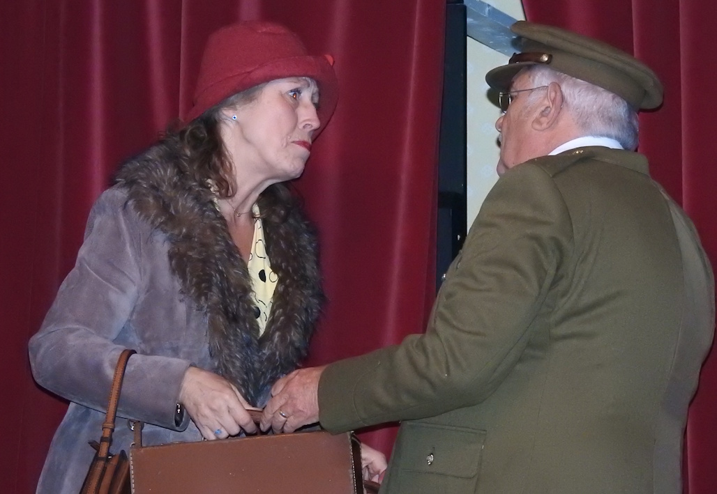 Up on stage the platoon is inspected by Capt Mainwaring (Nick Webb) and Sgt Wilson (Jo Smith).